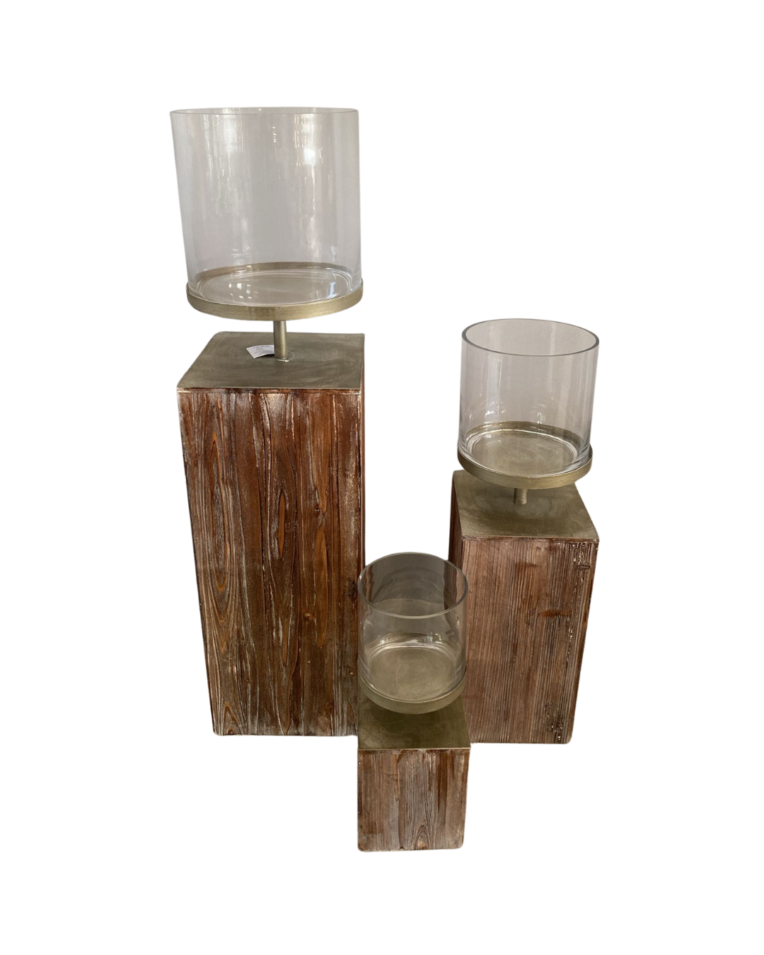 Conjunto Pedestal de Madeira com Vidros